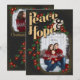 Wish everyone on your Christmas list Peace and Hope this holiday season. This lovely three (3) photo Christmas card has a retro aesthetic. The design creates a handmade papercut look with red, green, and gold faux glitter flowers. The shining glitter effect on a black background creates a bold and elegant statement. Personalise this budget-priced card with your favourite photos.