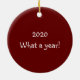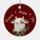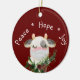 What a year it's been! Here's a cute keepsake ornament that sums up 2020 that features a watercolor long lashed whimsical cow with face mask, white "Peace, joy, hope" text and boughs of Christmas evergreens on dark red background. Personalize with name or other message on back.