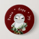 What a year it's been! Here's a cute keepsake button that sums up 2020 and features a watercolor long lashed whimsical penguin with face mask, white "Peace, joy, hope" text and boughs of Christmas evergreens on dark red background.