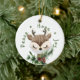 What a year it's been! Here's a cute keepsake ornament that sums up 2020 that features a watercolor long lashed whimsical reindeer / deer with face mask, green "Peace, joy, hope" text and boughs of Christmas evergreens on white background. Personalize with name or other message on back.