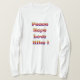 I love this shirt. I had written to the artist asking her if this picture was available on a shirt, and she wrote me back telling me where I could find the shirt. These shirts can be custom made to have a different saying. I loved this saying and went with it. The artist wrote me back later to tell me that she had seen my order go through. How's that for service? Pretty special. It's just as displayed. Perfect!