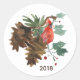 Peace in Nature holiday stickers with a red cardinal bird, pine cones, holly berries, and an area you can add the current year.