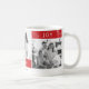 Minimalist bright red peace joy love lettering 3 photo collage script holiday coffee mug. Customise this mug with 3 photos and a personalised greeting.