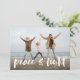 Modern Hanukkah photo cards feature your favorite image with "Peace and light" overlaid in white hand lettered brush typography, with your names and the year beneath.