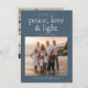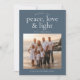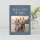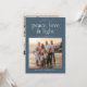 This Holiday Card features a photo on the front and 3 photos on the back. For this design all text is editable, as well as colour of text and background.