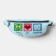 A cool acupuncturist fanny pack featuring a pretty green peace sign, cute red heart, and a person practicing wellness and pain treatment through acupuncture. Peace Love Acupuncture gift.