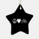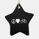 Peace, love and Bicycles shapes in black and white. Add personalised text to create your own bike inspired Christmas tree ornament. Delete the black graphic and choose your favourite background colour.