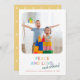 Peace and Love and Cookies - or your own custom add-on text! This fun, bright, modern Holiday card uses a rainbow of pastel colours and script typography for a wonderfully personal and cheerful Holiday greeting. Perfect for the cookie lovers family. On the back is a simple minimalist Christmas tree pattern on pastel sunny yellow.