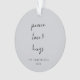 Simple, stylish, minimalist holiday ornament with modern informal casual handwritten script typography quote "Peace Love & Hugs" in black with a clean simple white background. The name and year can be easily customised for a personal touch. A elegant, minimalist and contemporary christmas design to stand out from the crowd this holiday season! #christmas #minimal #ornament
