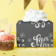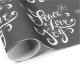 Customisable holiday gift wrapping paper featuring whimsical script of "PEACE, LOVE AND JOY" and a chalkboard background.