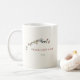 This elegant "Peace, Love & Joy" holiday mug features modern and minimal watercolor greenery with red berries on a neutral background.