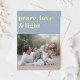 Peace, love, and light. | Send your Hanukkah greetings to family and friends with this customisable Hanukkah card. It features retro bold typography. Personalise this photo Hanukkah card by adding your details. This gold foil Hanukkah card is available in other colours and cardstock. Matching items are also available.