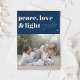 Peace, love, and light. | Send your Hanukkah greetings to family and friends with this customisable Hanukkah card. It features retro bold typography. Personalise this photo Hanukkah card by adding your details. This custom Hanukkah card is available in other colours and cardstock. Matching items are also available.