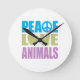 Peace Love Animals Round Clock