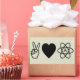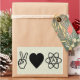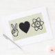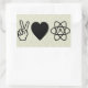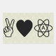 A hand raised in a "V" peace sign, a heart, and an Atheist symbol spells out "Peace Love Atheism."