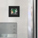 It was a bit smaller than expected, but I was too excited to check dimensions. The product itself send well printed though the grey text is a bit paint. Magnet worked perfectly on my fridge.