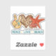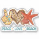 A fun and vibrant design featuring the words "Peace, Love, Beach" with a playful, colourful hand-peace sign, a heart, and adorable ocean elements like a sea turtle and starfish. This cheerful artwork captures the laid-back, beach-loving spirit, perfect for ocean lovers, tropical vacation enthusiasts, and those who live for sunny coastal vibes!