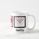 A peace sign, a heart, and bowling pins lined up just waiting to be taken down on this cute bowler gift. Peace Love Bowling mug.