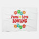 Bright happy flowers and the fun words - Peace Love Bowling - makes a great gift for a bowler.