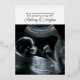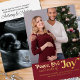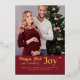 Peace Love and a bundle of Joy pregnancy announcement christmas card with simple photo and typographic design in luxury gold foil. Peace Love and a bundle of Joy is lettered in modern contemporary lettering and the photo template is set up for you to add 2 photos, one on the front and one on the back. You can also add your personalised holiday greeting with baby due date. Your photos are displayed in square format so, if you have any problems with placement, try cropping your picture to a square and re-uploading.
