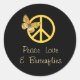 Large yellow peace symbol that is recognised around the world, with yellow butterfly overlay on black background. "Peace love & butterflies" text is customisable