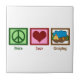 I love to camp. A peace sign, heart, and a cute campground complete with campfire for campers.