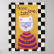 That says it all. this cat is wearing a pink and orange sweater, sporting a peace sign necklace and some really cool purpled mirrored painted sunglasses on a mustard yellow background with gold highlights. Signed by artist.
