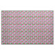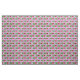 Cute cheerleading fabric with peace signs, hearts, and cheerleaders jumping up with their pom poms in hand on a pink background.