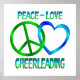 Cheerleaders can share their feelings with this fun retro design with a peace sign, heart, and the words - Peace Love Cheerleading.