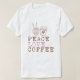 A cool typography design for coffee lovers, that reads: Peace, love, coffee.