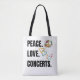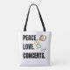 Peace Love Concerts Tote bag with handle.