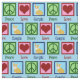 Peace Love Corgis. A cute Pembroke Welsh Corgi owner fabric with a pretty peace sign and beautiful heart next to the adorable dog.