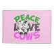 Peace Love Cows with a cute cow cartoon clipart as the O in COW on a pretty pink background.