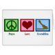 A peace sign, heart, and a cute croc rising out of the lake with big teeth!