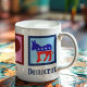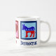 Cute Peace Love Democrat mug with a Democratic Party Donkey in red, white, and blue. A cool democrat gift for a political activist who works in politics and helps candidates win by helping with the election and campaign.