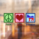 This cute democratic party window cling features a cool liberal design of a peace sign, heart, and red, white, and blue donkey. Peace Love Democrat.