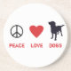 This customisable Peace Love Dogs product design with a peace sign, heart and dog silhouette makes a unique gift for dog owners and lovers.