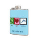 A peace sign, heart, and a pretty dolphin on a blue personalised flask. I love marine animals in the ocean.