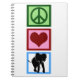 A green peace sign, red heart, and a beautiful elephant silhouette in black. A very cute gift for people who like pretty animals.