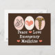 A peace symbol, heart and caduceus in pink, brown and gold on medical speciality physician gifts, MD apparel, clothing, emergency medicine t shirts and more merchandise for an ER doc. This makes a cute Doctor's Day, med school graduation, residency program acceptance, pre-med, board certification or match day gift for him, her, family and kids. Click on the following link to see all of our cute Chrissy H.