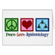 A cute epidemiologist Christmas card that features a peace sign, heart, and a circle of people to represent the branch of medicine that studies diseases and health to determine disease factors and prevention. Peace Love Epidemiology.