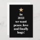 Peace, Love & Finally Hugs Humour Quote 2021 Holiday Card