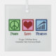 Peace Love Finance holiday gift. A cool custom financial advisor or planner Christmas ornament for a banker or money management who works with bank clients to manage their assets and finances. Cute customisable design for financial planning bankers in public, corporate, or personal finance.