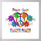 Bring back some retro hippy fun with these colourful flowers, a peace sign and heart, and the words Peace Love Flower Power.