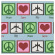 Peace signs, hearts, and aeroplanes on a light blue background for sky on the fabric. Great fabric to make gifts for a pilot, flight attendant or someone who just likes planes.