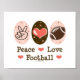 A high school, college or pro football fan, coach's wife and family or football player's girlfriend, wife, kid, mum or sister will love rooting for their favourite player or sports team with this cute, hip and cool peace symbol, heart and football poster in pink and brown with stars and polk a dots. Designed by Chrissy H. Studios, LLC.