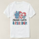 A fun groovy style typography design for the 4th of July Independence Day celebration, that reads: Peace, love & freedom.