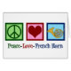 A cute French horn player Christmas gift for a band member in the orchestra. Peace Love French Horn.