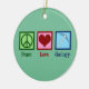Peace Love Geology. A cool geological science gift for a geologist who studies Earth sciences and rocks through geologic history of the planet. It features a cute peace sign, heart, and geologists rock hammer.