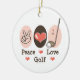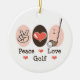 Peace symbol, heart, golf club and golf ball in pink and dark brown on cute golf t shirts, apparel and more golfer merchandise and gifts for a true golf lover. Click on the following link to see all of our Chrissy H.